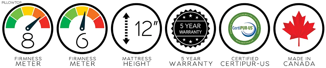 Our Hazel mattress is truly one of a kind. It features a high grade hard foam as a base. One side features a two inch memory foam top, while the other side is a high density foam quilted top. The mattress is designed for those that have changing sleep comfort levels.