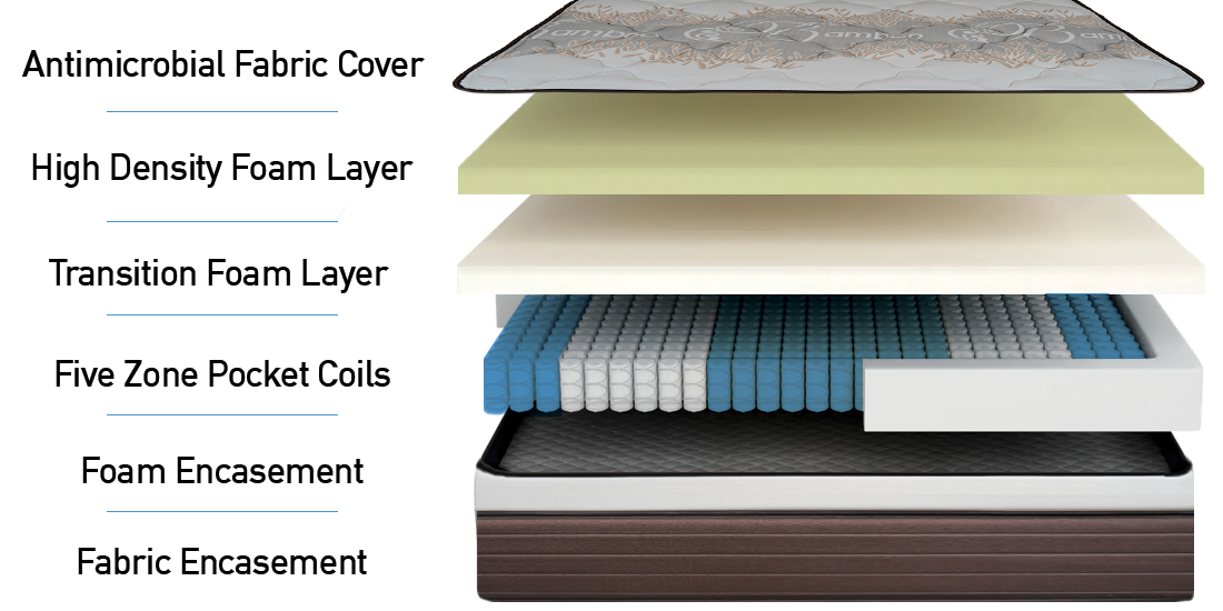 The Sigma is a five zone pocket coil mattress with a luxurious four inch pillowtop. Upholstery, medium density foam, and the latex layers combine to provide a comfortable, worry free sleep.